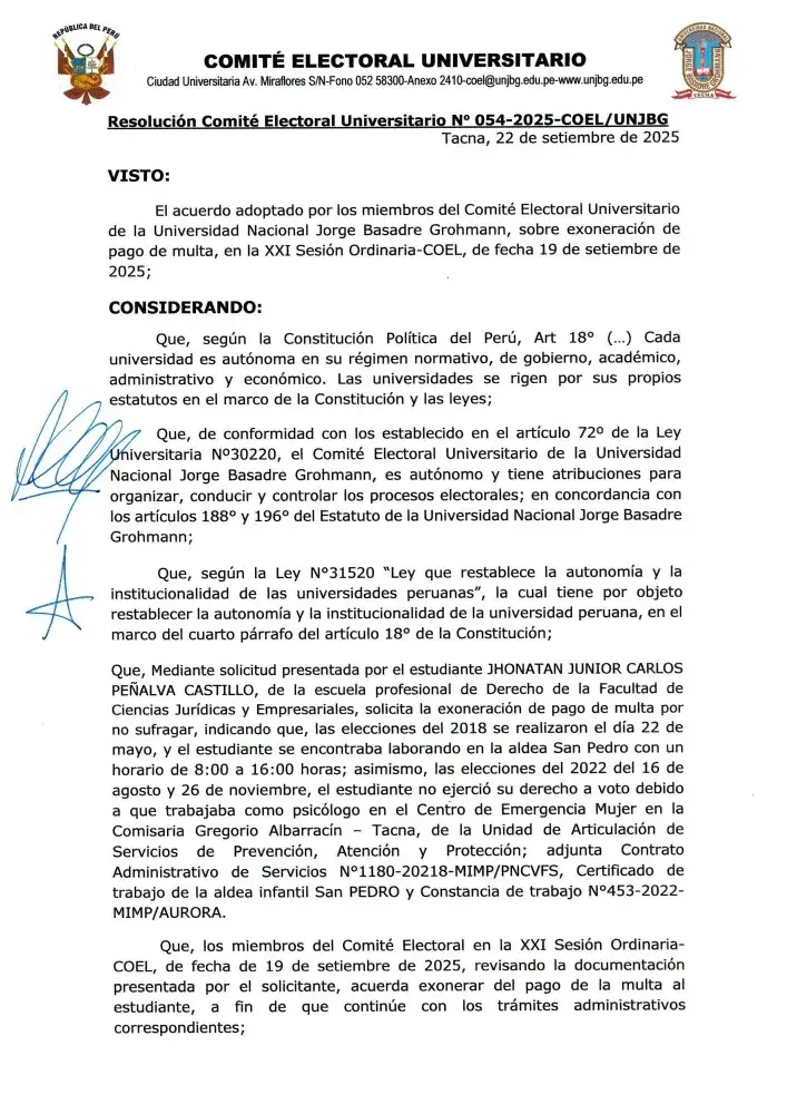 RCEU N° 054-2025 COEL/UNJBG