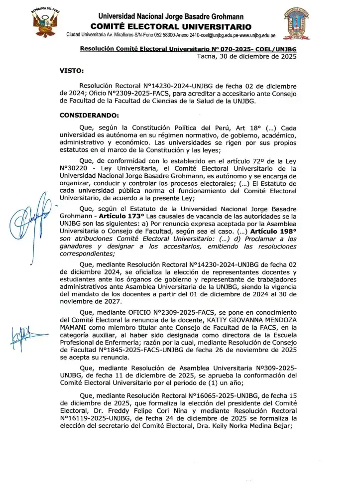 RCEU N° 070-2025 COEL/UNJBG