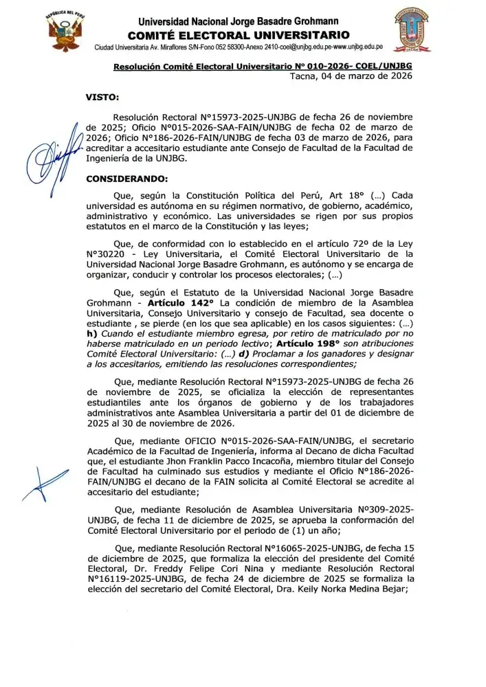RCEU N° 010-2026 COEL/UNJBG