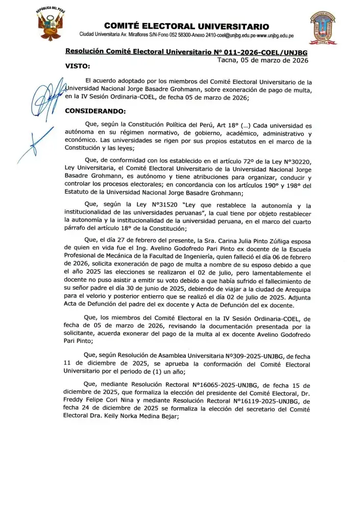 RCEU N° 011-2026 COEL/UNJBG