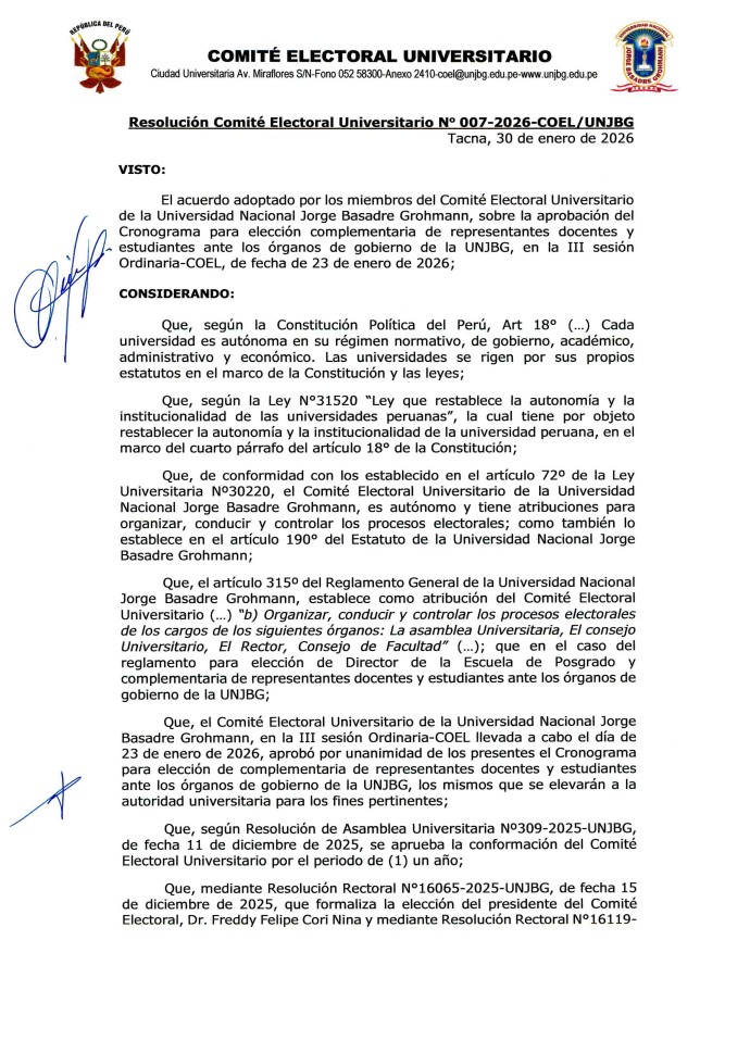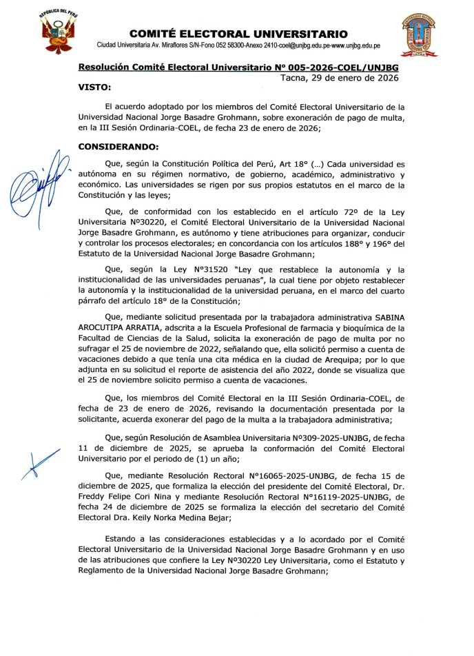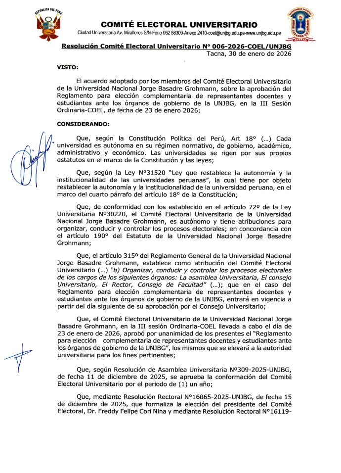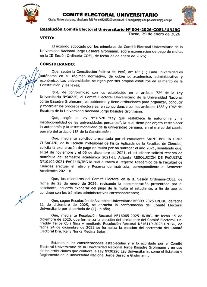 RESOLUCIONES DEL COMITÉ ELECTORAL UNIVERSITARIO (RCEU)